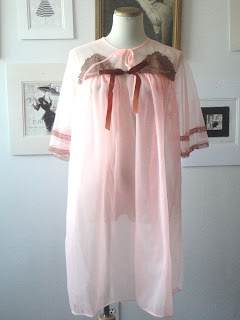Just added today to the shop is this 60's Mohair Coat from Austria. It is a mustard and green color, odd I must say. Also a peachy pink 60's sheer robe. I think that it is so sexy!!!